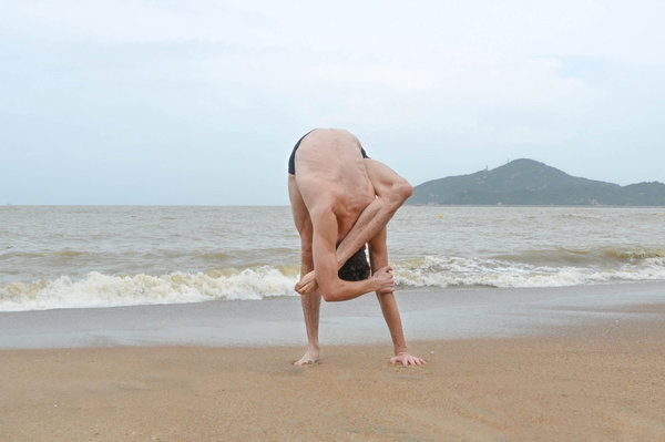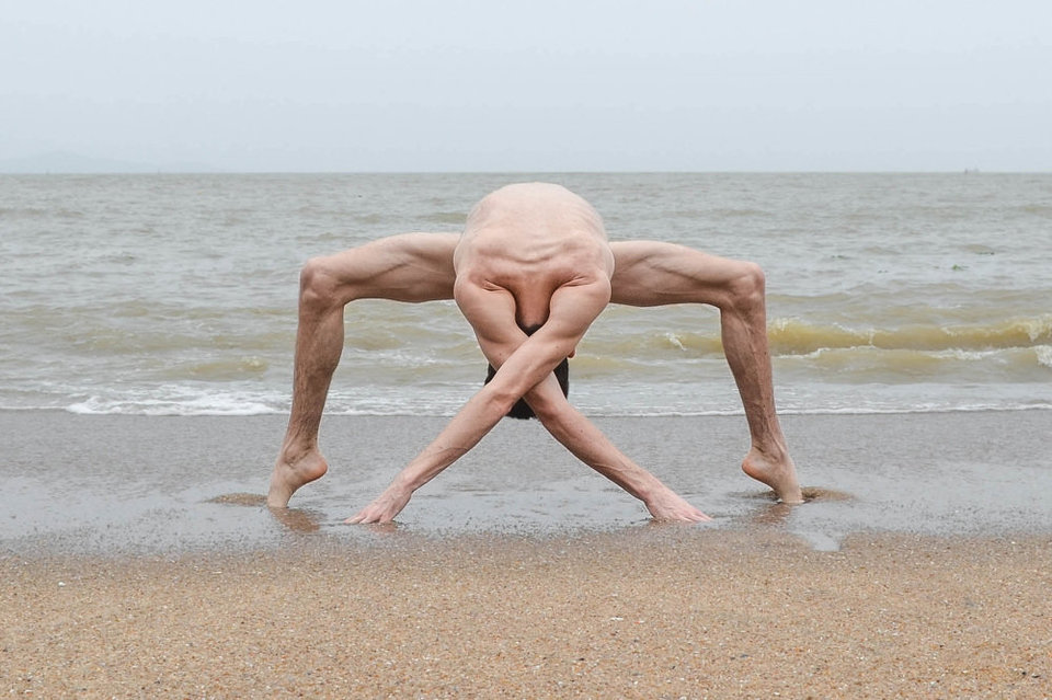 Contorcionista cria figuras com o corpo em meio à natureza